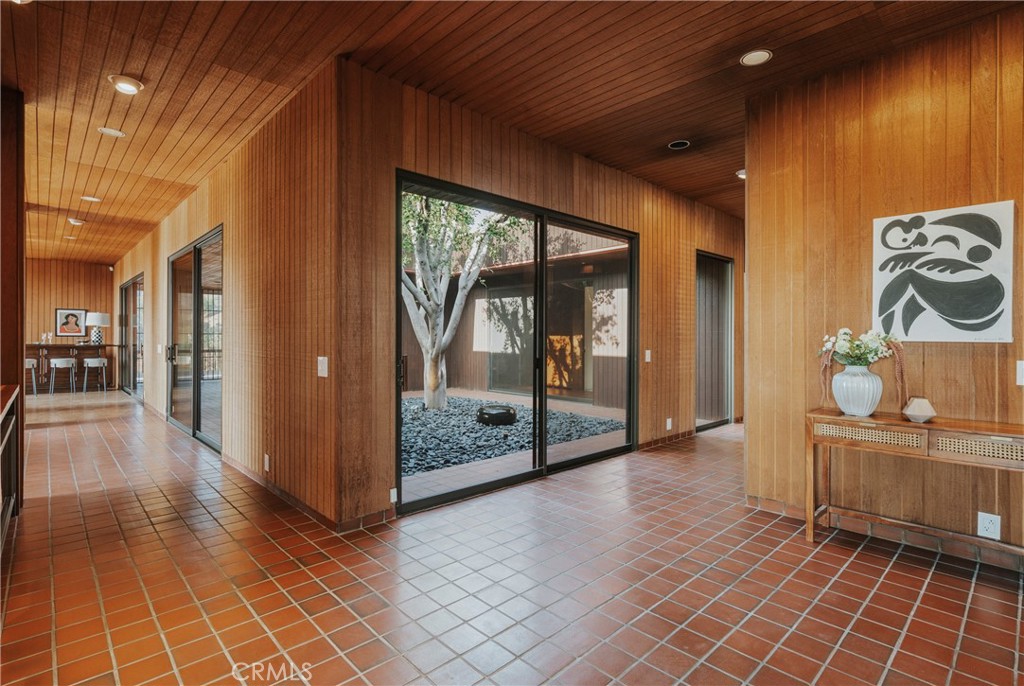 Spanning 3,973 square feet, this striking U-shaped residence is set on a rare 29,847-square-foot lot, ensuring unmatched privacy and breathtaking cinematic views. From the moment you arrive, the tranquil atrium creates an ambiance of serenity, setting the stage for what's to come. Inside, soaring ceilings and expansive glass walls flood the space with natural light, accentuating the rich redwood siding and seamless indoor-outdoor flow.